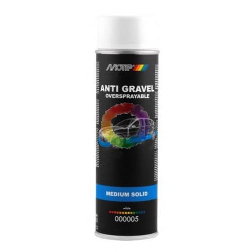 Motip Антигравий в аэрозоли, белый - превосходная долговременная защита для наружных частей шасси автомобиля (надколесные арки, дуги, пороги) от коррозии, попадания гравия и мелких камней. Устойчива к воздействию солей, кислот, щелочей, перепадам температуры. может покрываться к любым видам эмалей.