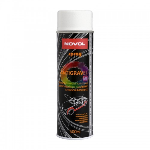 Средство для защиты кузова Novol Spray Antigravel MS Антигравийное покрытие, аэрозоль 0,5л – это продукт, образующий плотную, эластичную плёнку. Нанесенный слой имеет мелкозернистую структуру и защищает покрытие от удара камней. Средство также защищает покрытие от воздействия бензина, масел, воды и солей. Обладает шумопоглащающими свойствами. Основывается на синтетических смолах, не содержит асфальтов и битум. Может покрываться любыми акриловыми лаками.
